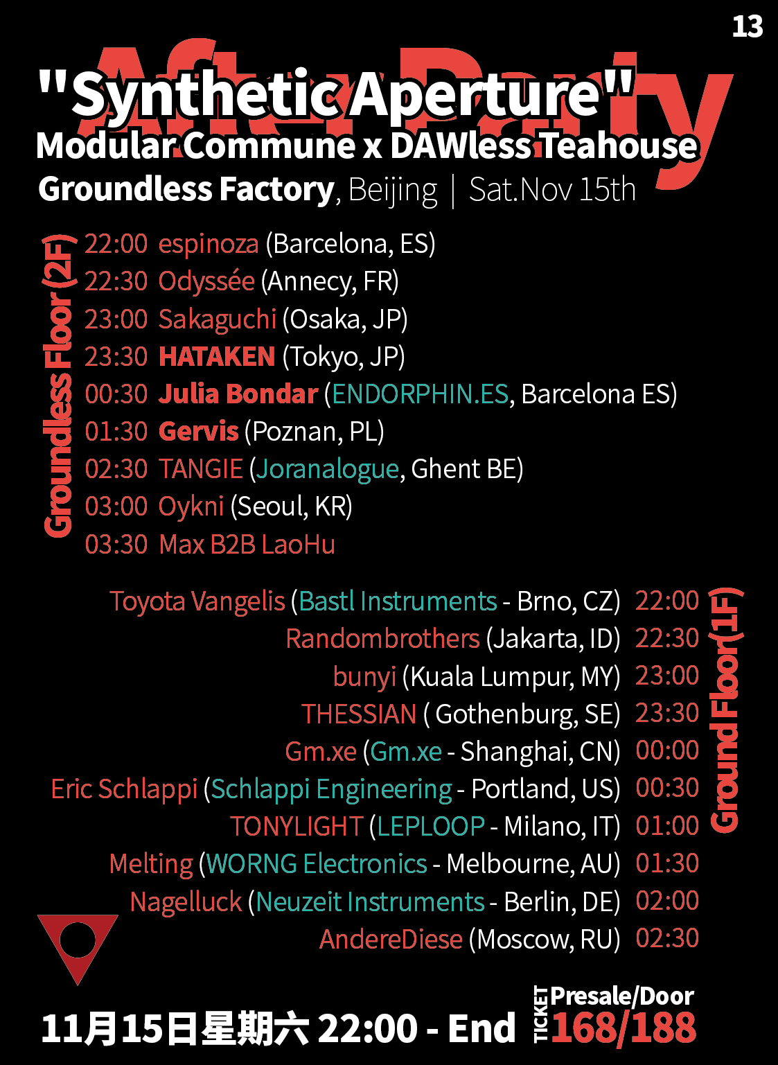 泻火 (MiNi Audio / Akashic) | ![]() | Fri 15:00 – 15:15 | Modular Live | |