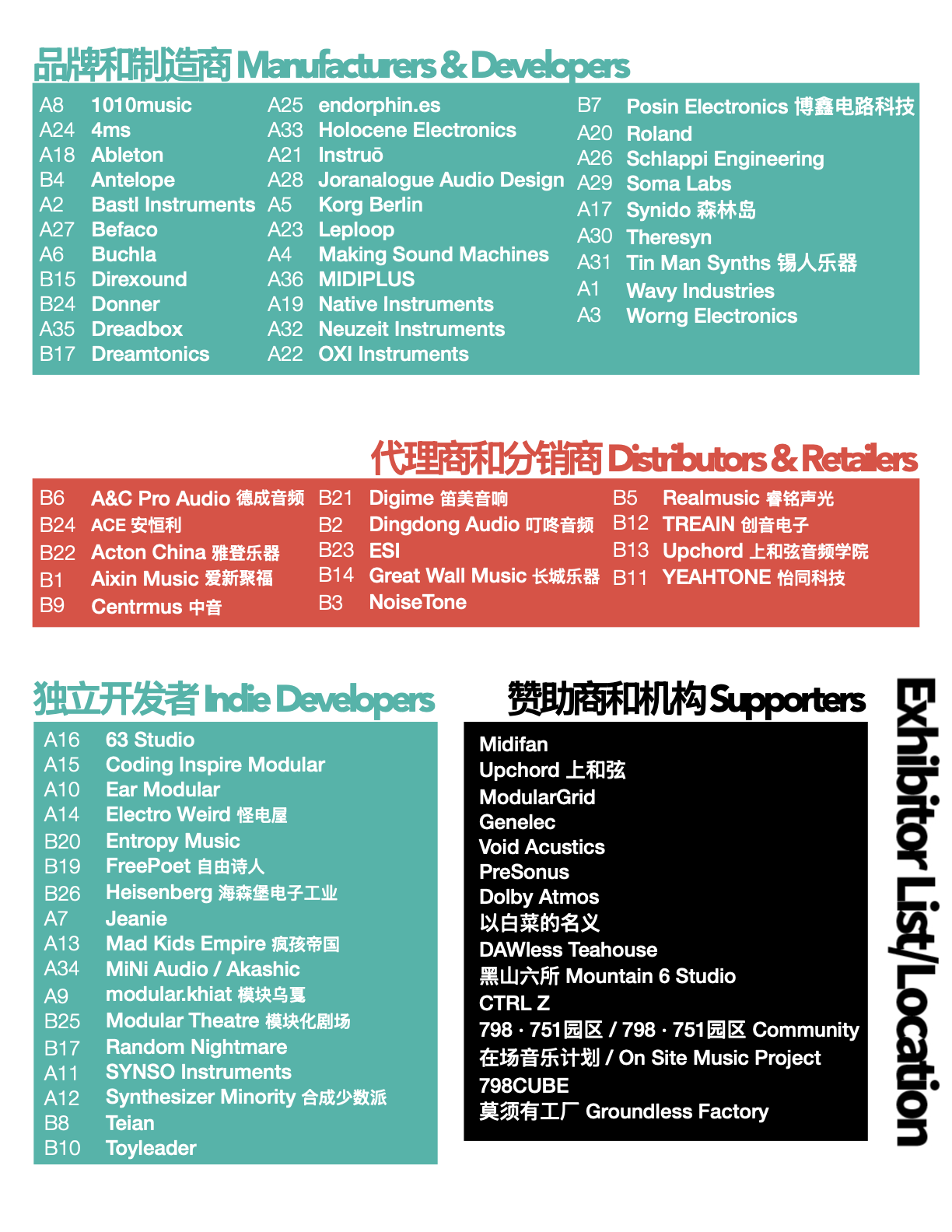 | Tin Man Synths 锡人乐器 | Shanghai | Bringing DIY modules, components, and education to China and Southeast Asia. |